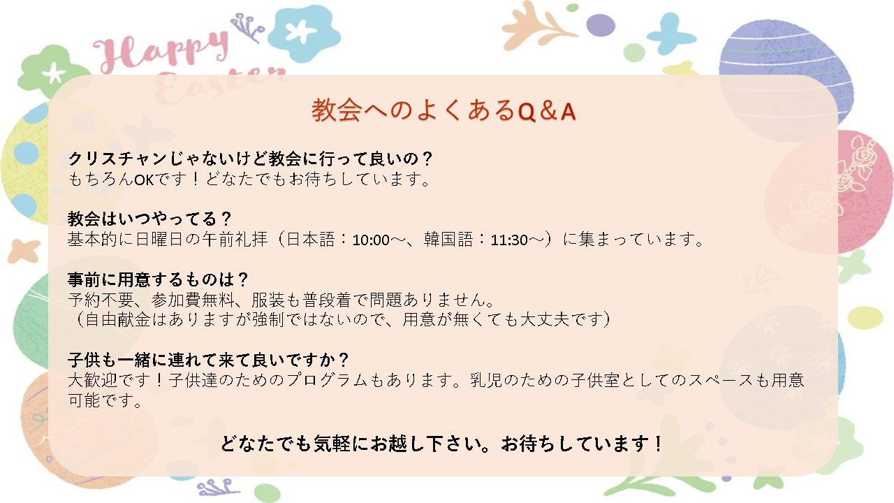 ぜひお近くの教会へ足を運んでみてください。お待ちしております!!
