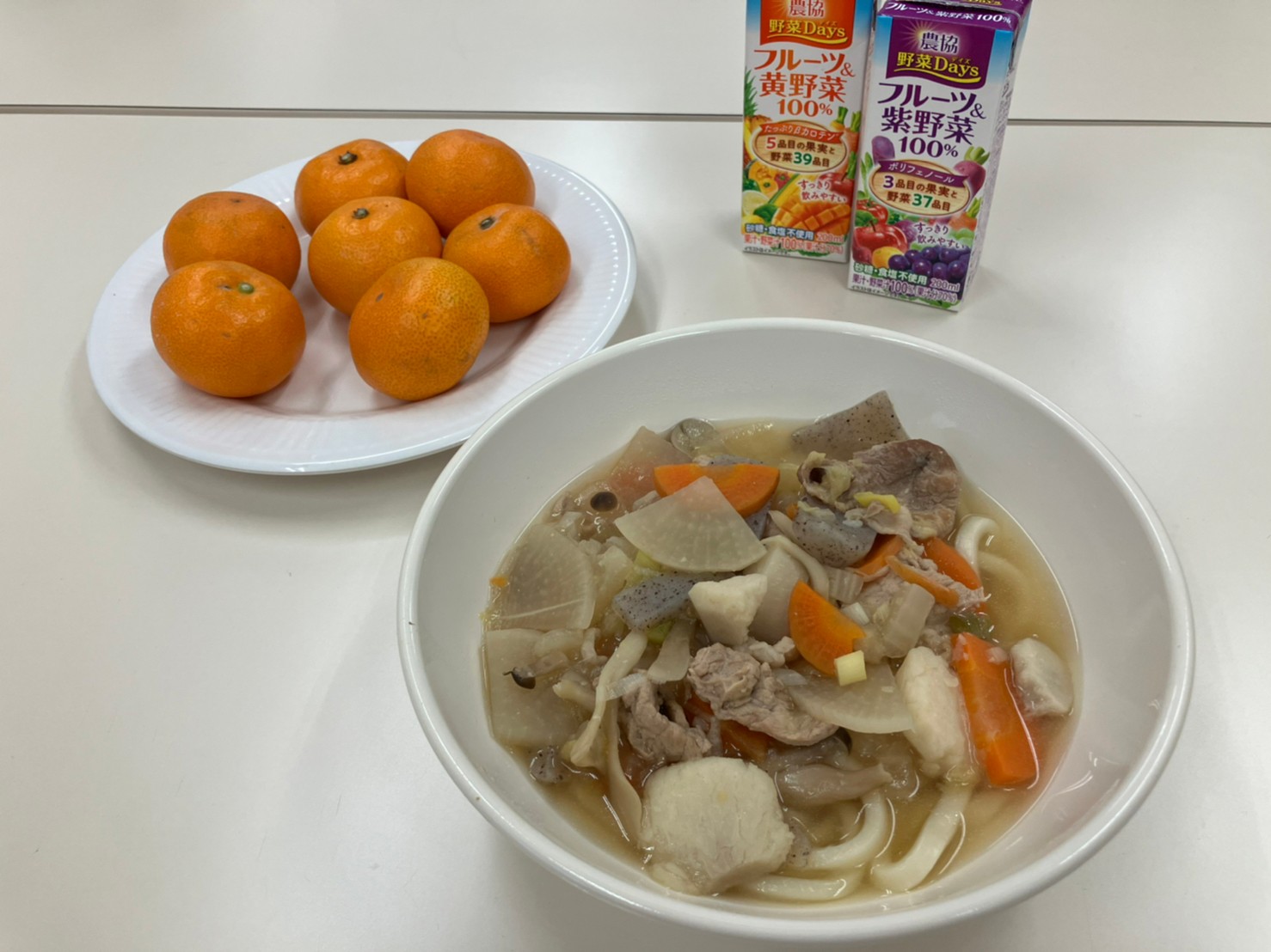 礼拝で飾って頂いたみかんと、けんちんうどんでした。