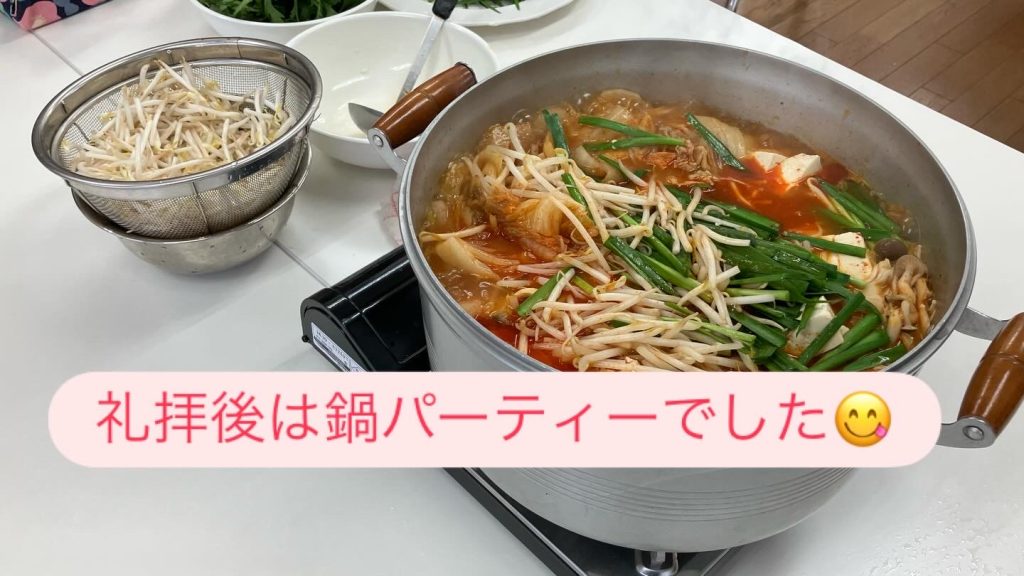 2025年11月20日 / 最終更新日時 : 2025年11月20日 saitama イベント 2025/11/16 収穫感謝礼拝Tweet 11/16(日)は収穫感謝礼拝が行われました。私たちが生きるために必要なものを日々、与えてくださっている神様に感謝する礼拝です。日々の生活においても、当たり前と思って何となく見過ごしてきたことは、思い返してみればたくさんあると思います。そんな小さな感謝の想いを、忘れずに生きていけたらと思います!! 礼拝後は野菜などの具材を持ち寄りで、鍋パーティーが行われました。美味しく頂きました!!